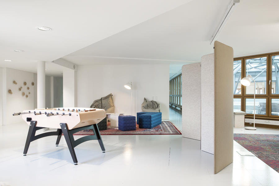 + other flexible acoustic elements, made from soft, absorbent materials to reduce sound and noise transfers. (e.g. BuzziCube, BuzziTotem)