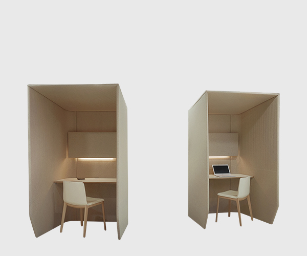 in an open office space consider adding desk partitions to existing desks and furnish with privacy booths to create both acoustic and visual privacy.