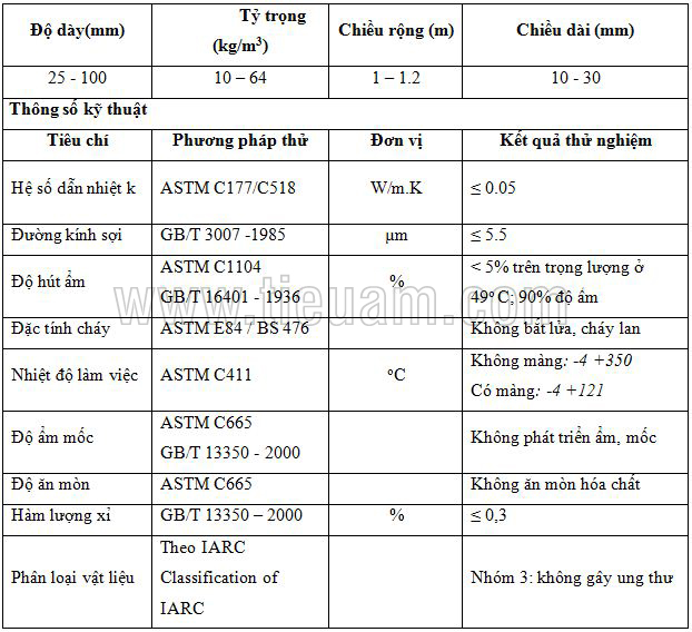 - Hệ số dẫn nhiệt k : 0,045 – 0,031 W/m.K tại nhiệt độ 20°C.