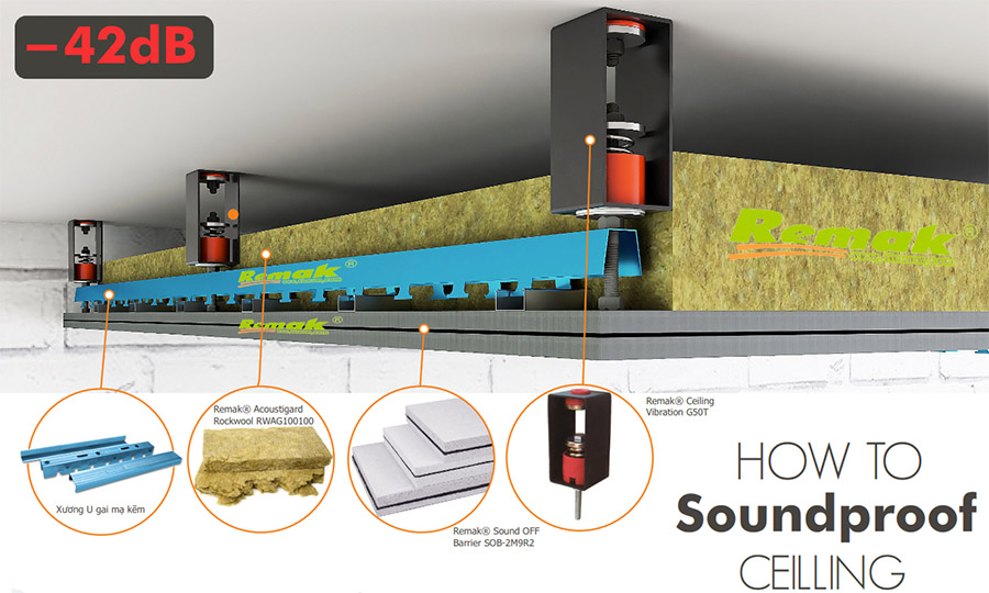 Cấu tạo lớp trần cách âm 1 lớp tiêu chuẩn