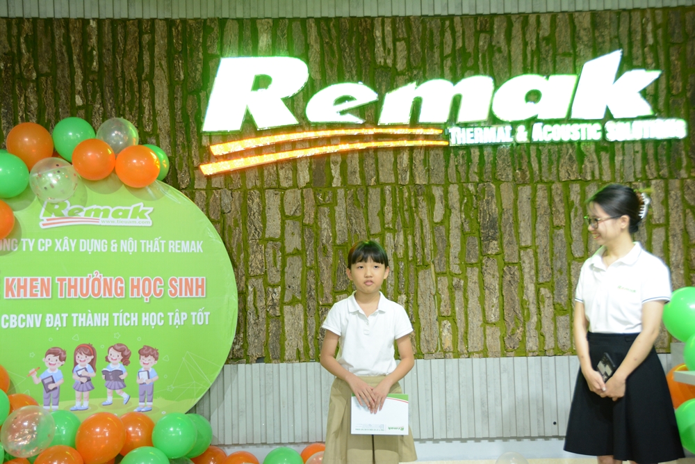 Bà Nguyễn Thị Ngọc Ánh – Giám đốc Cty CP Xây dựng & Nội thất Remak phát biểu khai màn chương trình. Đại diện cho doanh nghiệp, bà Ánh biểu dương tinh thần nỗ lực, quyết tâm học tập, rèn luyện và những thành tích xuất sắc của các bạn học sinh: "Công ty rất vui mừng trước kết quả các con đạt được và mong rằng, trong thời gian tới, các con tiếp tục phát huy tinh thần chăm ngoan, học giỏi, thực hiện tốt 5 điều Bác Hồ dạy. Remak cũng hy vọng sẽ được tiếp tục đồng hành cùng Quý Phụ huynh là cán bộ công nhân viên công ty trong quá trình nuôi dạy và giáo dục các con suốt những năm về sau."
