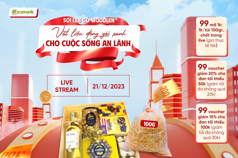Trong thời gian 10-11g ngày 21/12/2023 (thứ năm tuần sau), Remak áp dụng gần 300 voucher và mã khuyến mãi. Tất cả Quý Khách hàng tham gia livestream chào bán – ưu đãi sợi len gỗ Woodlen™ đều có cơ hội nhận được:
