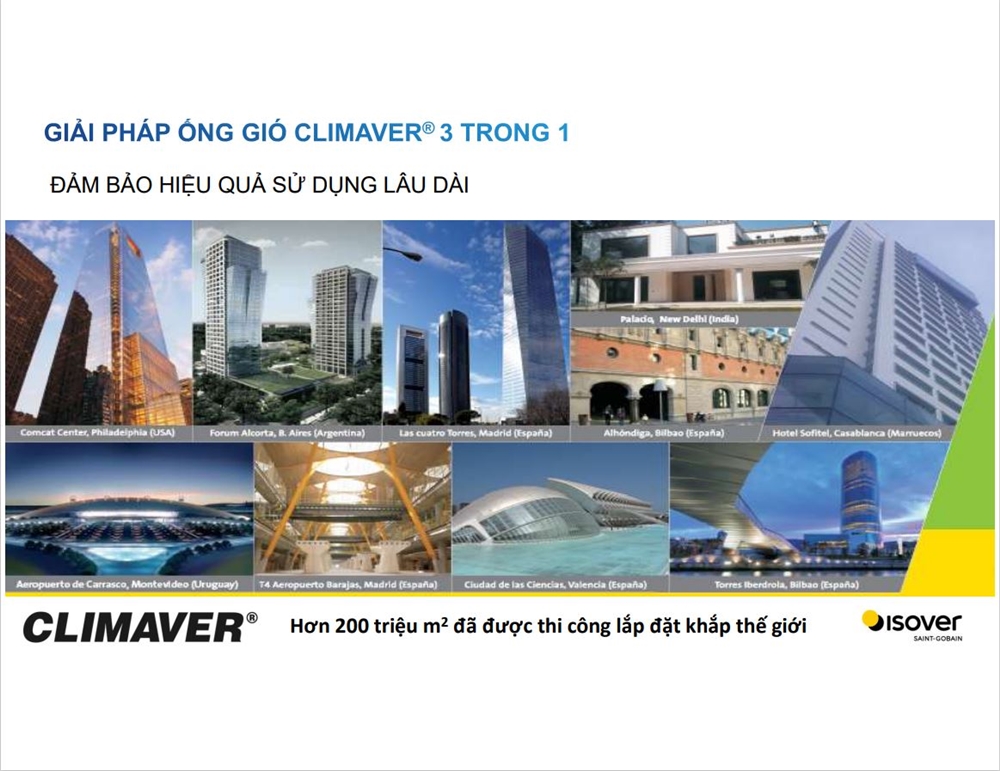 2 dòng sản phẩm Ống gió Climaver 360 Plus R, Ống gió Climaver 360 Neto đã được thi công, lắp đặt hơn 200 triệu m² trên toàn thế giới và tin dùng nhiều năm qua ở châu Âu... Chất lượng, mức giá của Climaver cách biệt so với ống gió tole truyền thống. Vì vậy, các khách hàng, chủ đầu tư, nhà thầu, đơn vị thi công... có tầm nhìn xa, biết đặt lợi ích lâu dài hướng đến tương lai lên trên tư duy lối mòn, thói quen mua sắm, thị hiếu ưa chuộng giá rẻ chắc chắn sẽ gặt hái được lợi ích bền vững, ngọt ngào!