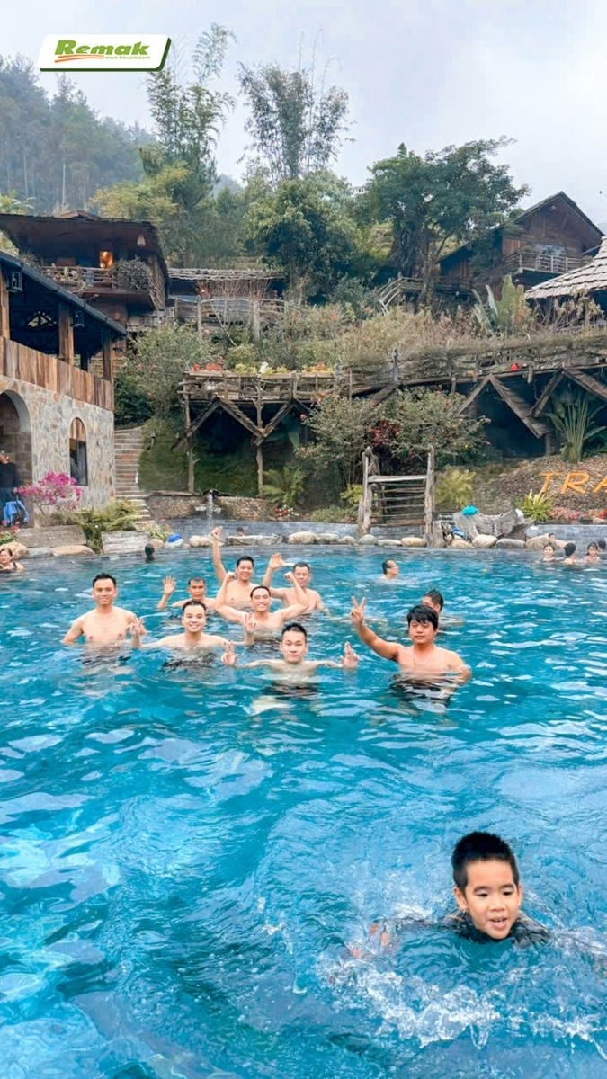 Tắm khoáng nóng chill hết mình: “Ui dời ơi lạnh thế này ai tắm?” À đó là câu mọi người nói trước khi đi thôi chứ còn khi đến nơi thì không thấy ai không xuống tắm =)))  Ngâm mình giữa làn nước ấm, ngắm view núi rừng, thích vậy ai mà chê được =)))