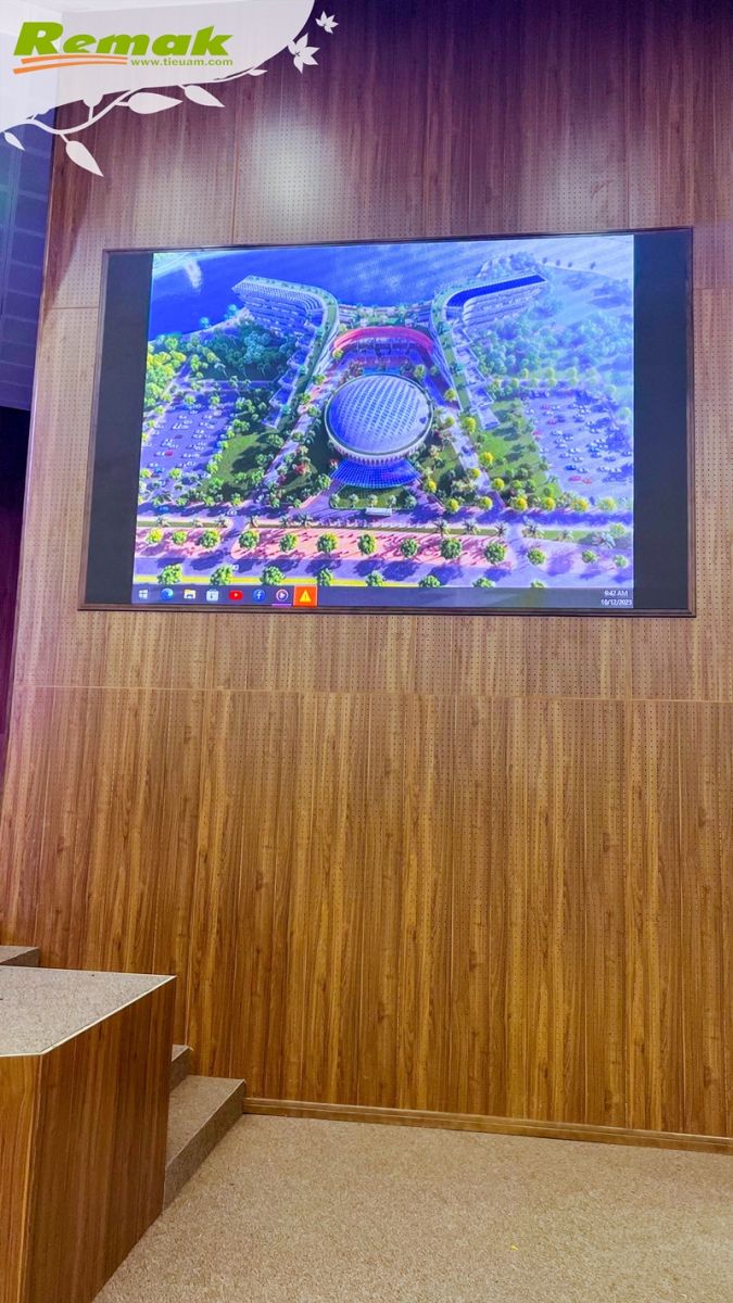Một số hình ảnh về hạng mục khối nhà Trung tâm Hội nghị quốc tế do Remak thi công tiêu âm bằng bông khoáng Remak® Rockwool và gỗ tiêu âm đục lỗ Remak® Perforated: