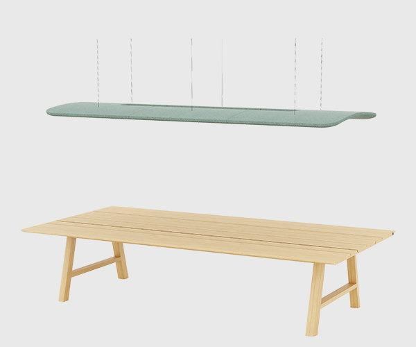 In a space already occupied by other furniture pieces, it can be difficult to find room for any acoustic solutions. However, often in between floor and ceiling there is not always a lot happening, and in spaces like these, it might be a great improvement to add, for instance,