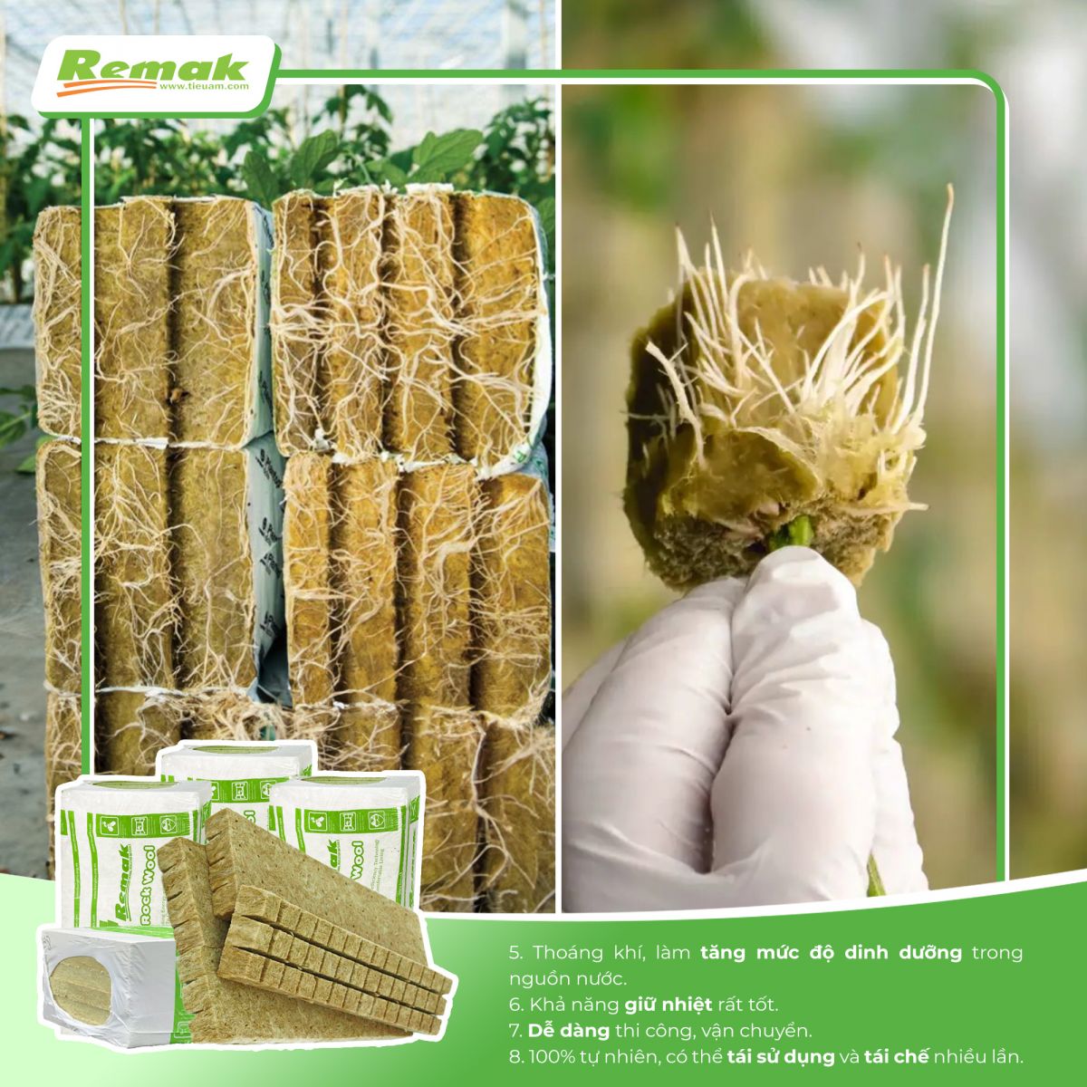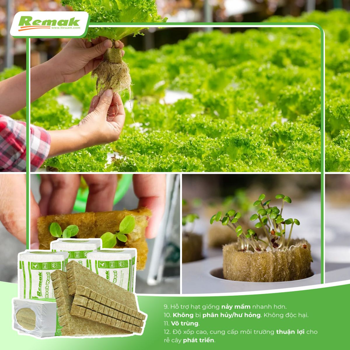 9.Remak® Rock wool cung cấp một khởi đầu vững chắc khi hỗ trợ hạt giống nảy mầm nhanh hơn so với môi trường đất. Nó không bị phân hủy hay hư hỏng theo thời gian như các giá thể thủy canh khác (ví dụ: xơ dừa...)