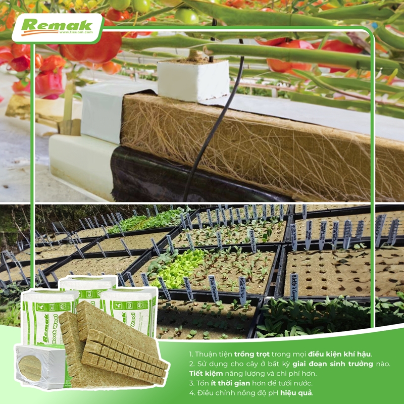Ngoài việc được biết đến như một loại vật liệu cách nhiệt hiệu suất cao, bông khoáng Remak® Rock wool còn sử dụng để trồng trọt thủy canh mà không cần đất, giúp bảo vệ môi trường sinh thái, đóng góp bước tiến cho cuộc cách mạng nông nghiệp công nghệ cao. Mô hình này khá phổ biến ở các quốc gia Âu, Mỹ, châu Á, Trung Quốc... nhưng còn khá mới mẻ tại Việt Nam.