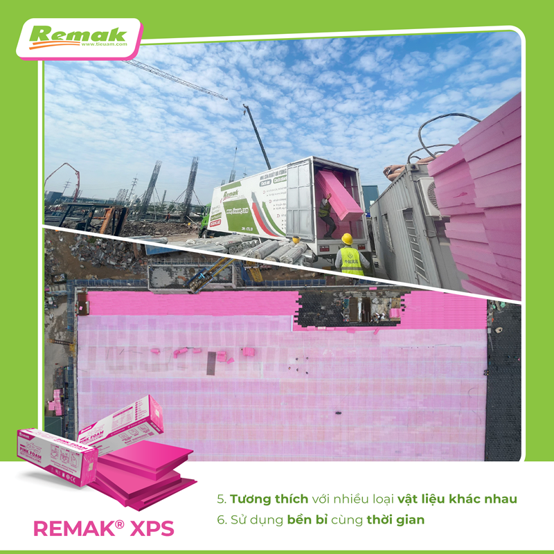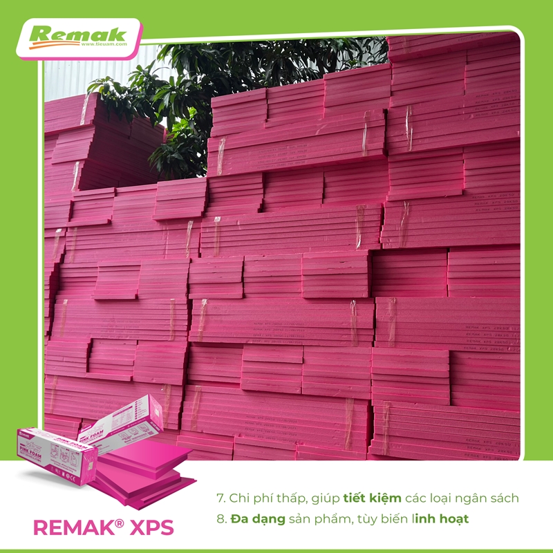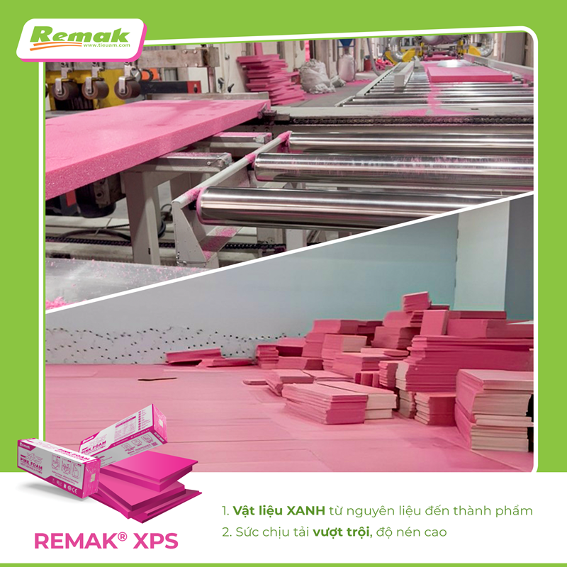 Remak® XPS làm bằng nhựa phế phẩm đã qua sử dụng, kết hợp công nghệ khí CO₂ tinh khiết tạo nên một loại vật liệu XANH từ nguyên liệu đến thành phẩm. Sản phẩm mang lại giá trị nhiều mặt cho công trình cũng như nhà đầu tư và các đối tượng sử dụng.