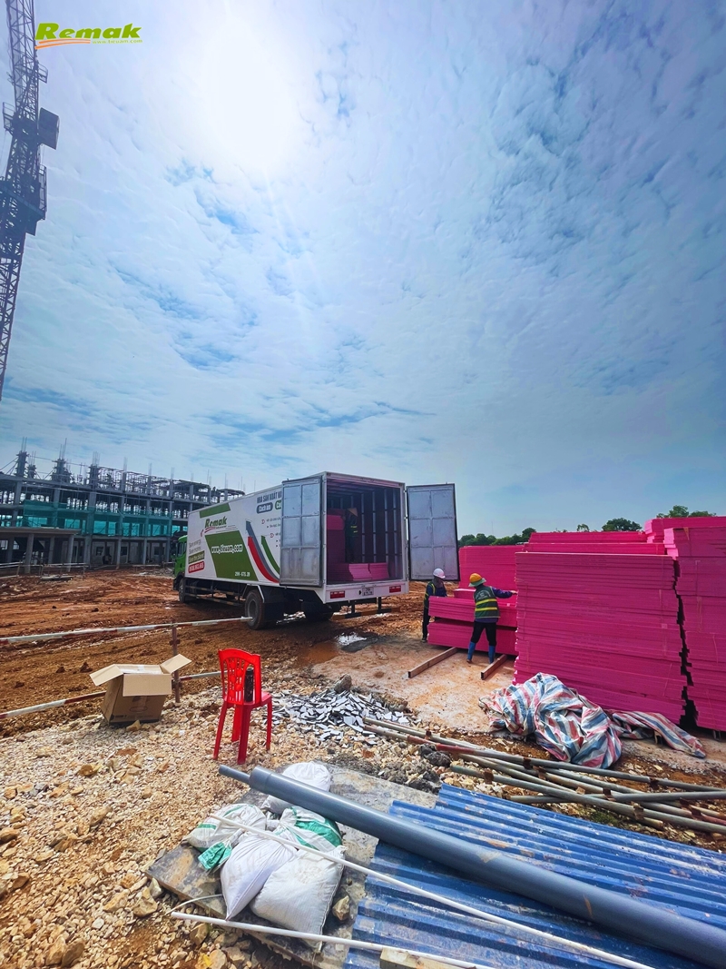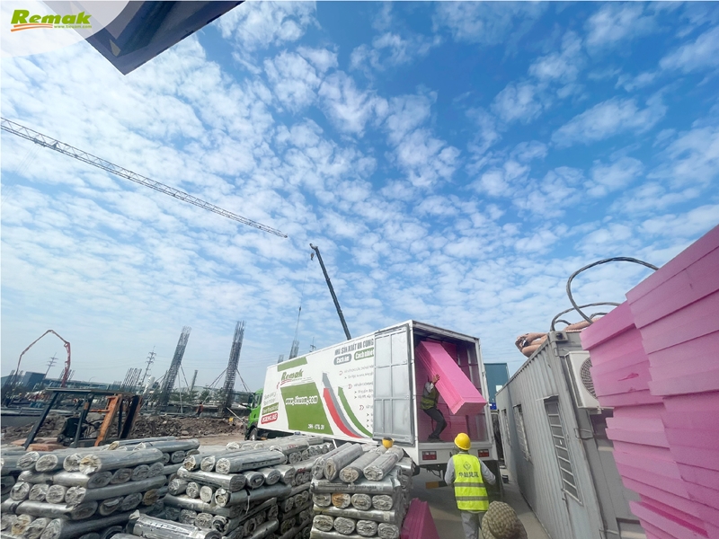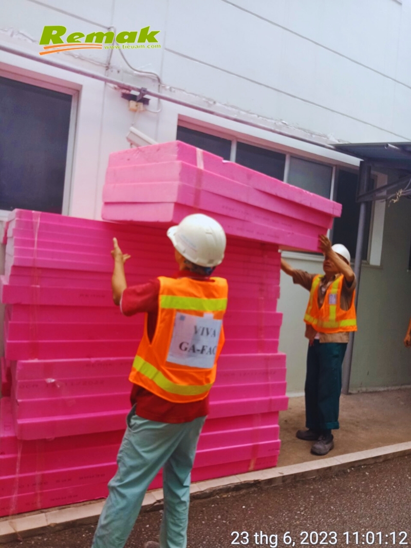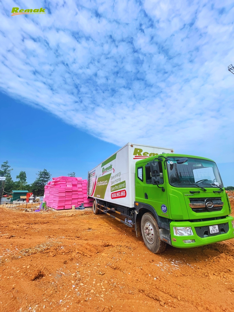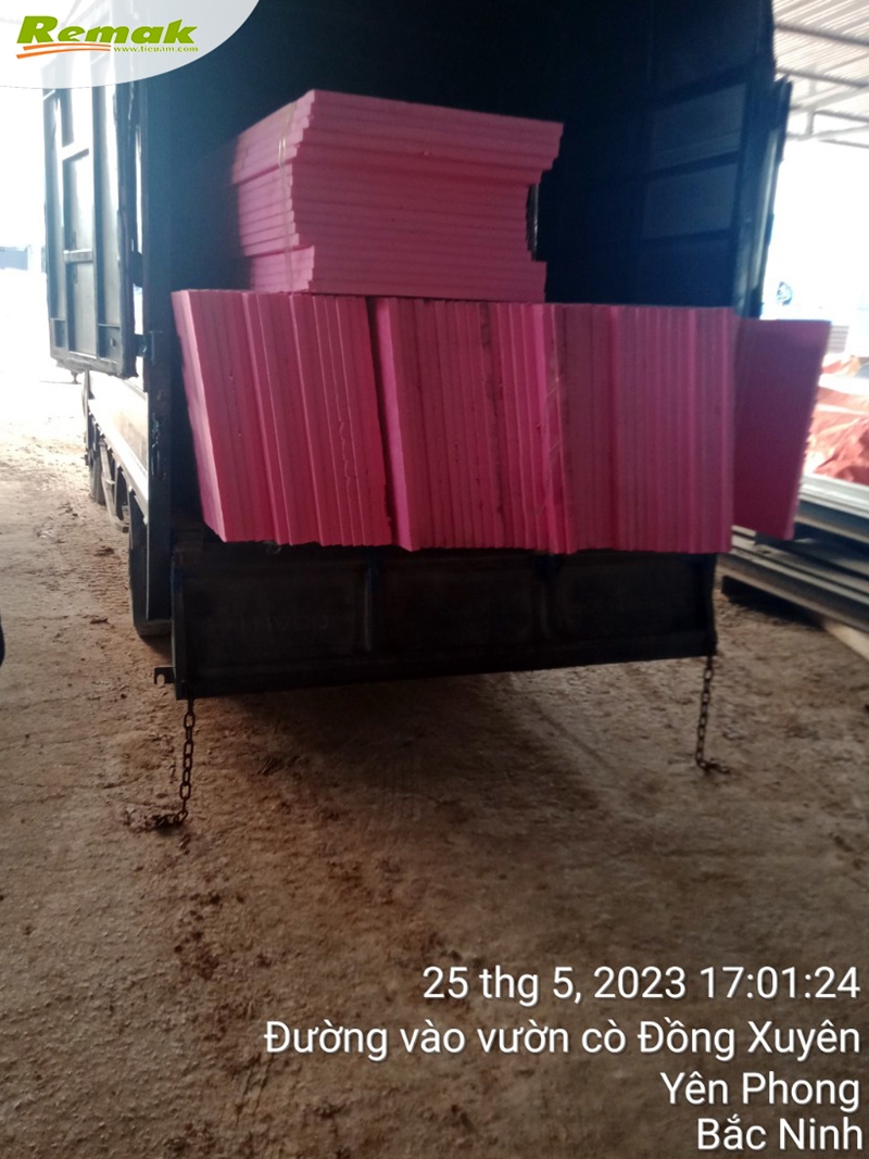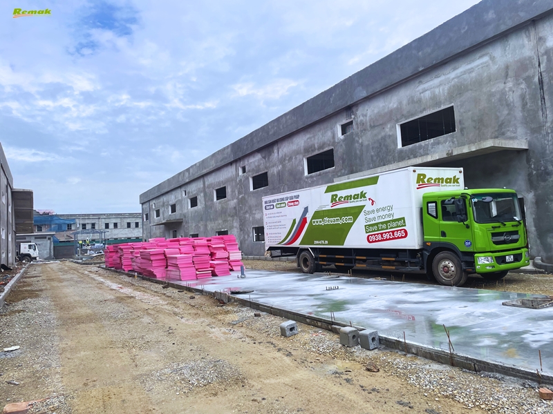 Công ty TNHH 100% vốn đầu tư nước ngoài tại KCN Thuận Thành, tỉnh Bắc Ninh nhập số lượng lớn tấm xốp Remak® XPS để thi công cách nhiệt cho phần mái nhà xưởng sản xuất.