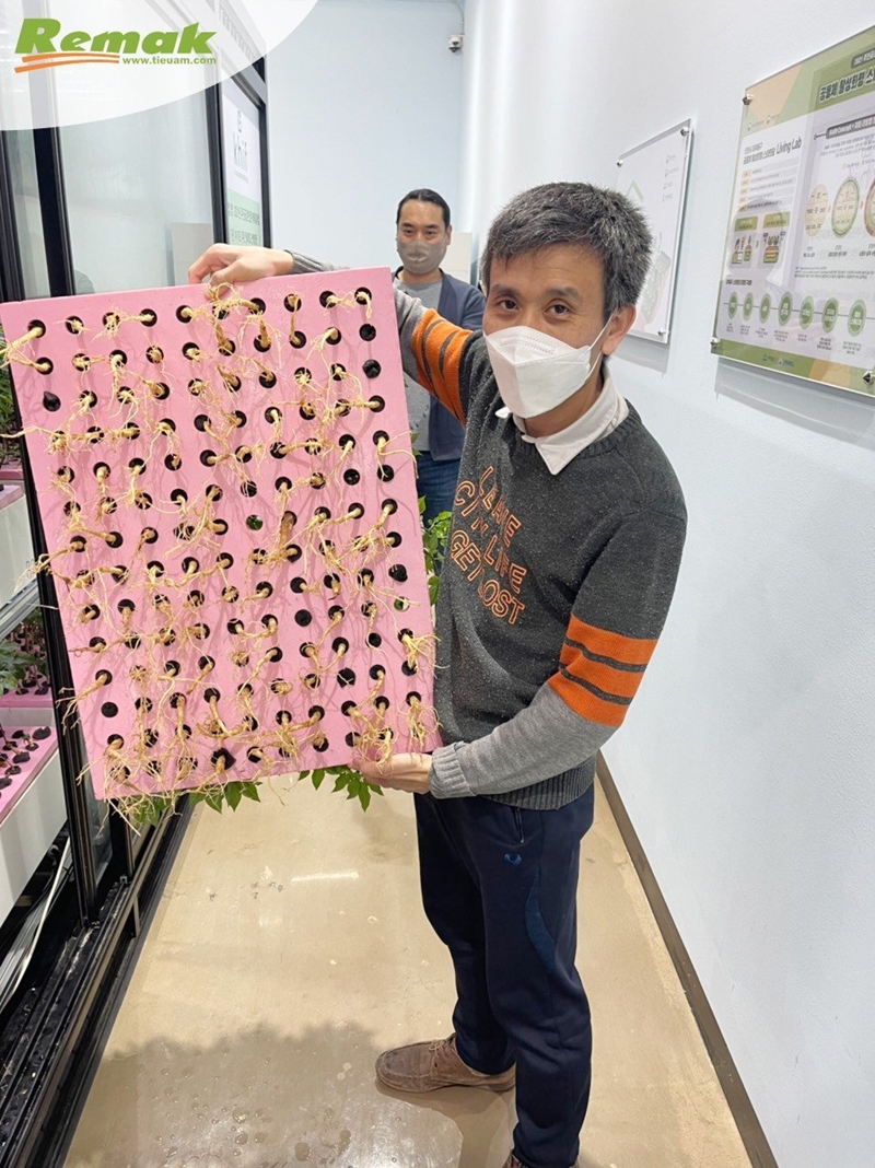 Tiến sĩ Hoàng Văn An (sinh năm 1983) bảo vệ thành công đề tài nghiên cứu chuyên ngành nhân sâm, nấm dược liệu và Probiotics năm 2014 tại trường Đại học Kyung Hee, Hàn Quốc. Ông An sử dụng tấm xốp Remak® XPS làm giá đỡ thủy canh để trồng sâm Ngọc Linh baby và đạt hiệu quả cao