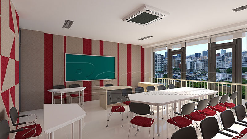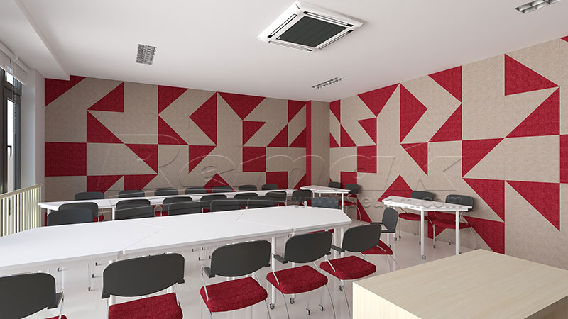 Ngoài lợi ích về âm thanh, gỗ tiêu âm Remak® Linear và tấm tiêu âm Sonic kết hợp với nhau còn bổ sung thêm nét thẩm mỹ cho giảng đường giúp tăng cường không gian tổng thể của không gian, tạo ra một môi trường thuận lợi cho việc học tập và tập trung.