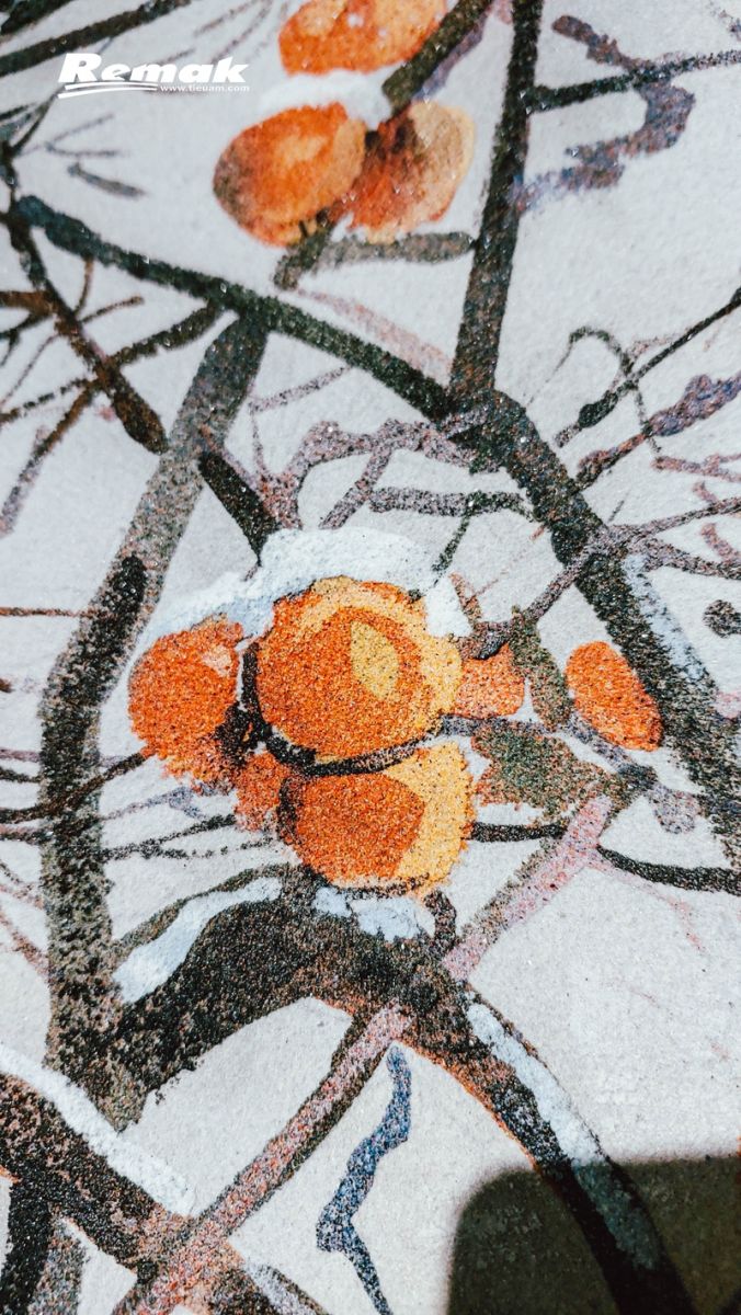 Không gian tinh xảo, đầy chiều sâu với các bức tranh được tạo hình bằng cát cùng những nguyên liệu tự nhiên như đá, sỏi, tre, trúc, thực vật... v.v... tại Họa viện Quân Thanh