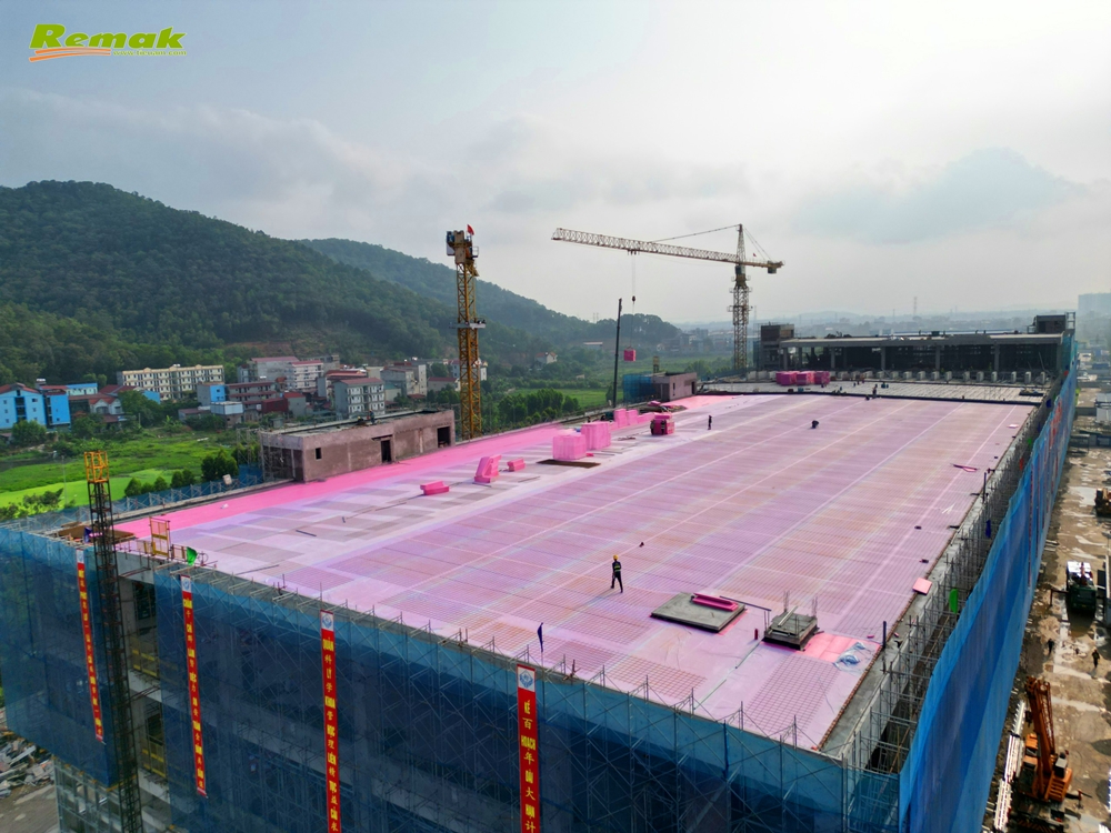 Hạng mục cất nóc nhà xưởng do Công ty TNHH Xây dựng Hoa Việt (Huayue Construction Industry Company Ltd.) thi công. Remak® XPS là vật liệu xanh và là thành phần không thể thiếu được trong quá trình xây dựng các công trình xanh. Vì vậy, sản phẩm của Cty CP Xây dựng & Nội thất Remak sản xuất được lựa chọn sử dụng bởi chất lượng vượt trội; khả năng cách nhiệt, cách âm, chống đọng sương, chịu nén tối ưu; giá thành hợp lý. Anh Nguyễn Đình Cường (Công ty TNHH Xây dựng Hoa Việt) – Chỉ huy trưởng tòa C2, Dự án Nhà máy Sản xuất tai nghe, dây kết nối New Wing nhận định: “Xốp XPS của Remak có trọng lượng gọn nhẹ, vận chuyển dễ dàng, thi công nhanh chóng; giúp chúng tôi làm việc rất thuận lợi, đạt hiệu suất cao và chắc chắn cũng sẽ góp phần nâng cao tuổi thọ bền bỉ cho cả công trình nhà máy!”.