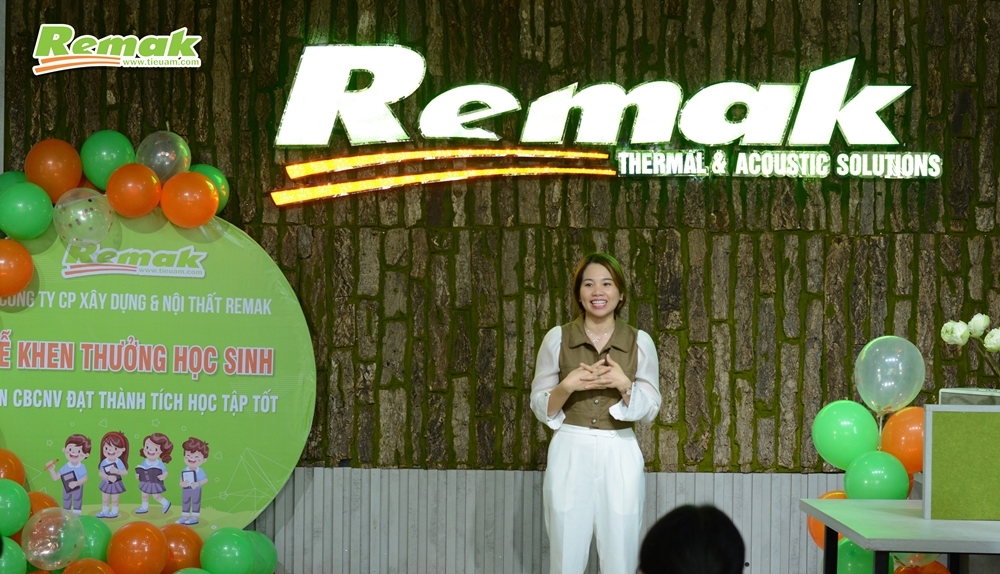 Bà Nguyễn Thị Ngọc Ánh – Giám đốc Cty CP Xây dựng & Nội thất Remak phát biểu khai màn chương trình. Đại diện cho doanh nghiệp, bà Ánh biểu dương tinh thần nỗ lực, quyết tâm học tập, rèn luyện và những thành tích xuất sắc của các bạn học sinh: "Công ty rất vui mừng trước kết quả các con đạt được và mong rằng, trong thời gian tới, các con tiếp tục phát huy tinh thần chăm ngoan, học giỏi, thực hiện tốt 5 điều Bác Hồ dạy. Remak cũng hy vọng sẽ được tiếp tục đồng hành cùng Quý Phụ huynh là cán bộ công nhân viên công ty trong quá trình nuôi dạy và giáo dục các con suốt những năm về sau."