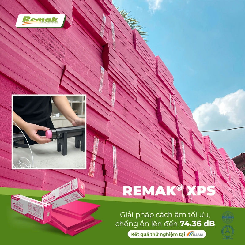 Remak® XPS là vật liệu cách âm cao cấp với khả năng chống ồn lên đến 74.36 dB, được kiểm định bởi Viện DASM. Đạt tiêu chuẩn quốc tế, xốp Remak® XPS là giải pháp lý tưởng cho các công trình xây dựng hiện đại, giúp cải thiện hiệu quả cách âm, cách nhiệt và chống ẩm.