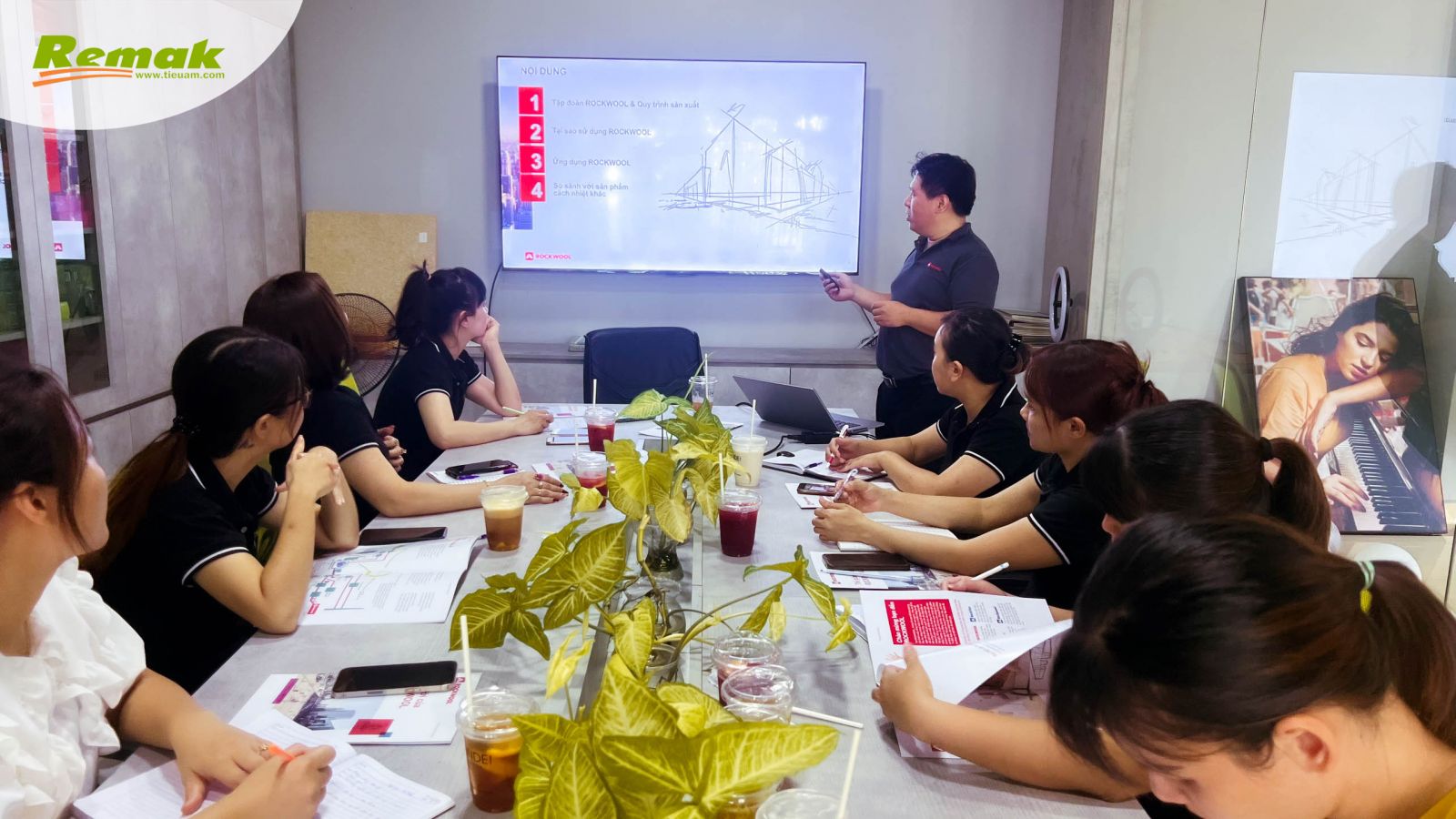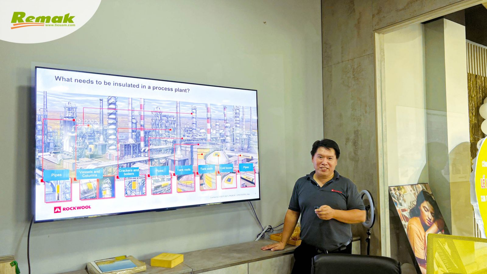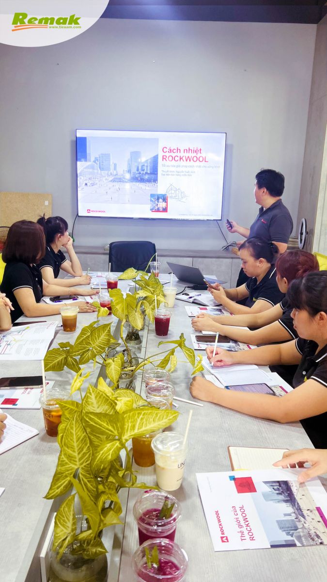 Chiều 31/8, Chuyên viên Văn phòng đại diện tại Việt Nam ROCKWOOL (Thailand) Limited Nguyễn Tuấn Anh thực hiện buổi đào tạo – chia sẻ lý thú về các dòng sản phẩm bông khoáng ROCKWOOL đi kèm ứng dụng đa dạng; đối sánh trực quan đặc tính cách nhiệt, cách âm, chống cháy nổi trội so với những vật liệu cùng loại khác; kỹ thuật thi công; giải pháp cho toàn bộ lớp vỏ tòa nhà, các ngành công nghiệp nặng cũng như các công trình dân dụng, thương mại... v.v...