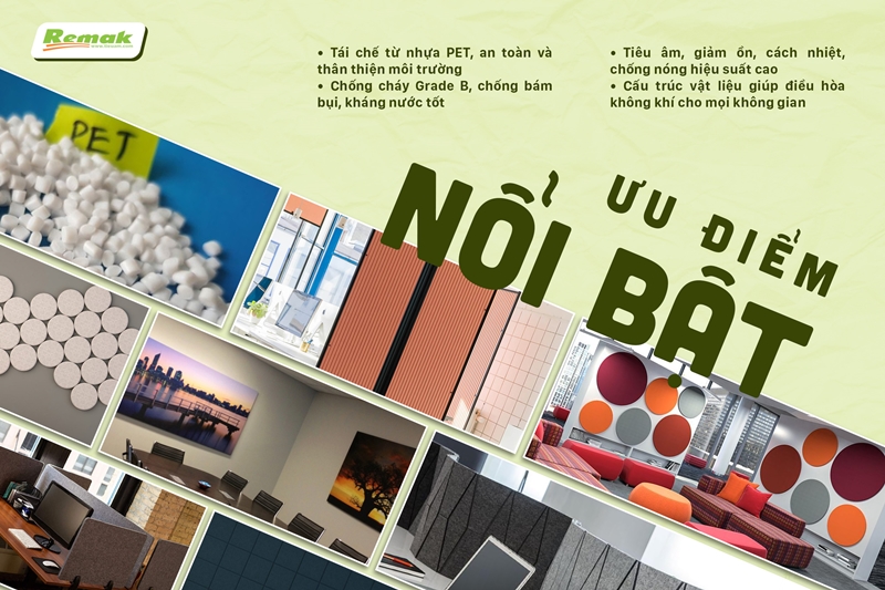✅️ Remak® Acoustic Sonic được tái chế từ nhựa PET, thân thiện với môi trường, không mùi, không có khí thải, an toàn với sức khỏe.