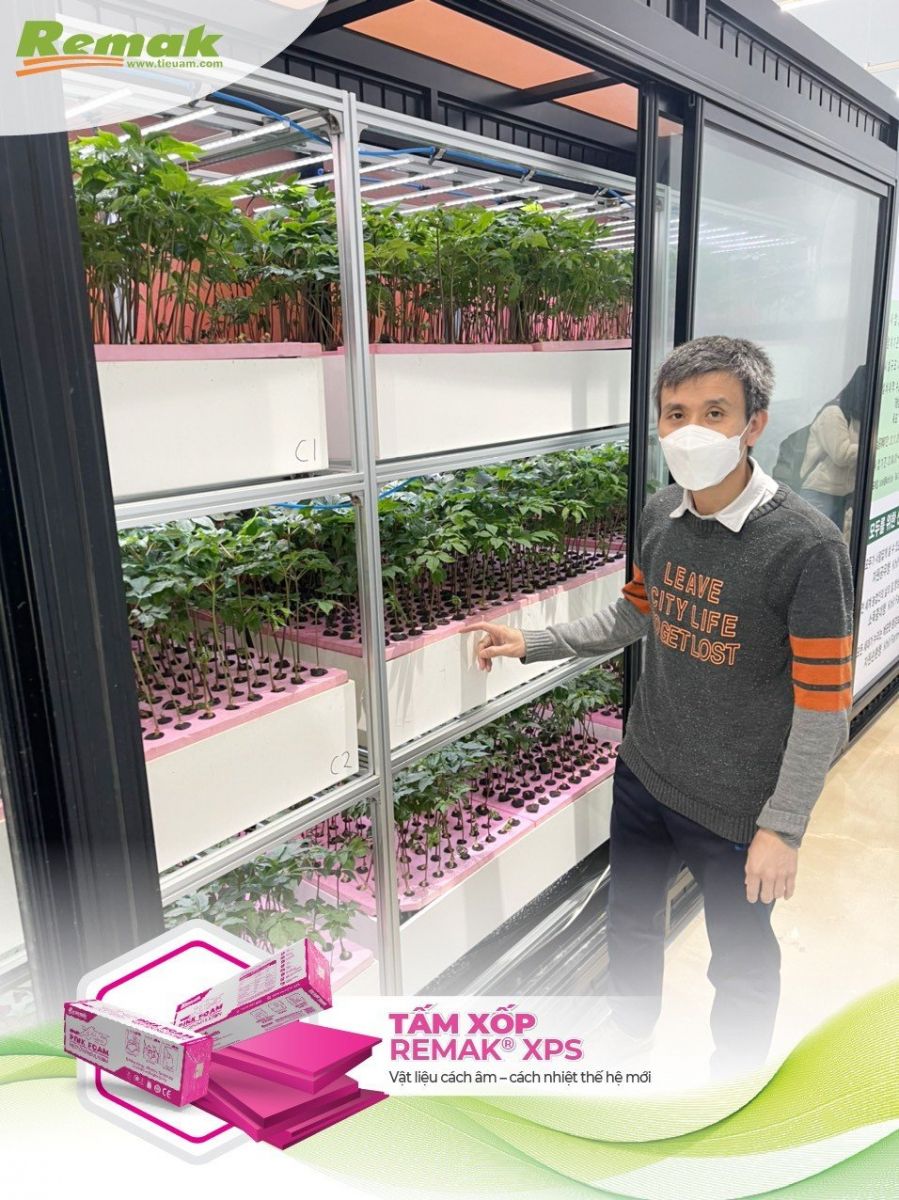 Khi chuyển giao công nghệ cho các đơn vị, tổ chức, cá nhân khác, Tiến sĩ An khuyến nghị họ nên dùng xốp Remak® XPS làm giá đỡ thủy canh vì ông đã tự mình kiểm chứng tính hiệu quả nhiều mặt của loại vật liệu xanh này.
